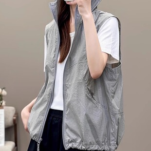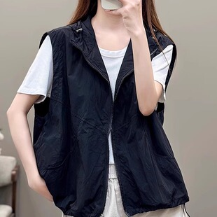 户外薄款 夏季 洋气百搭宽松工装 连帽马甲女时尚 防风叠穿外套薄 新款