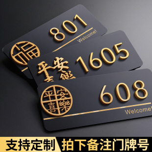牌家用定做酒店出租房房号数字贴 饰磁吸号码 亚克力门牌号高级感轻奢创意定制2026新款 住宅别墅房间入户门口装