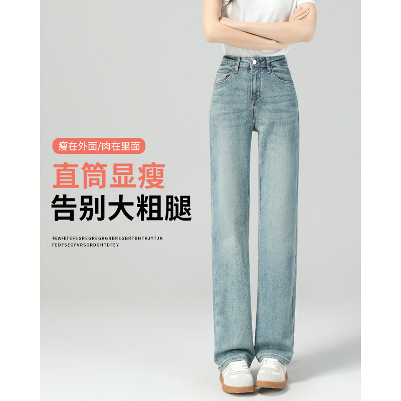 浅色修身 流行爆款 高腰显瘦窄版 阔腿春季 子 直筒牛仔裤 裤 女2026新款