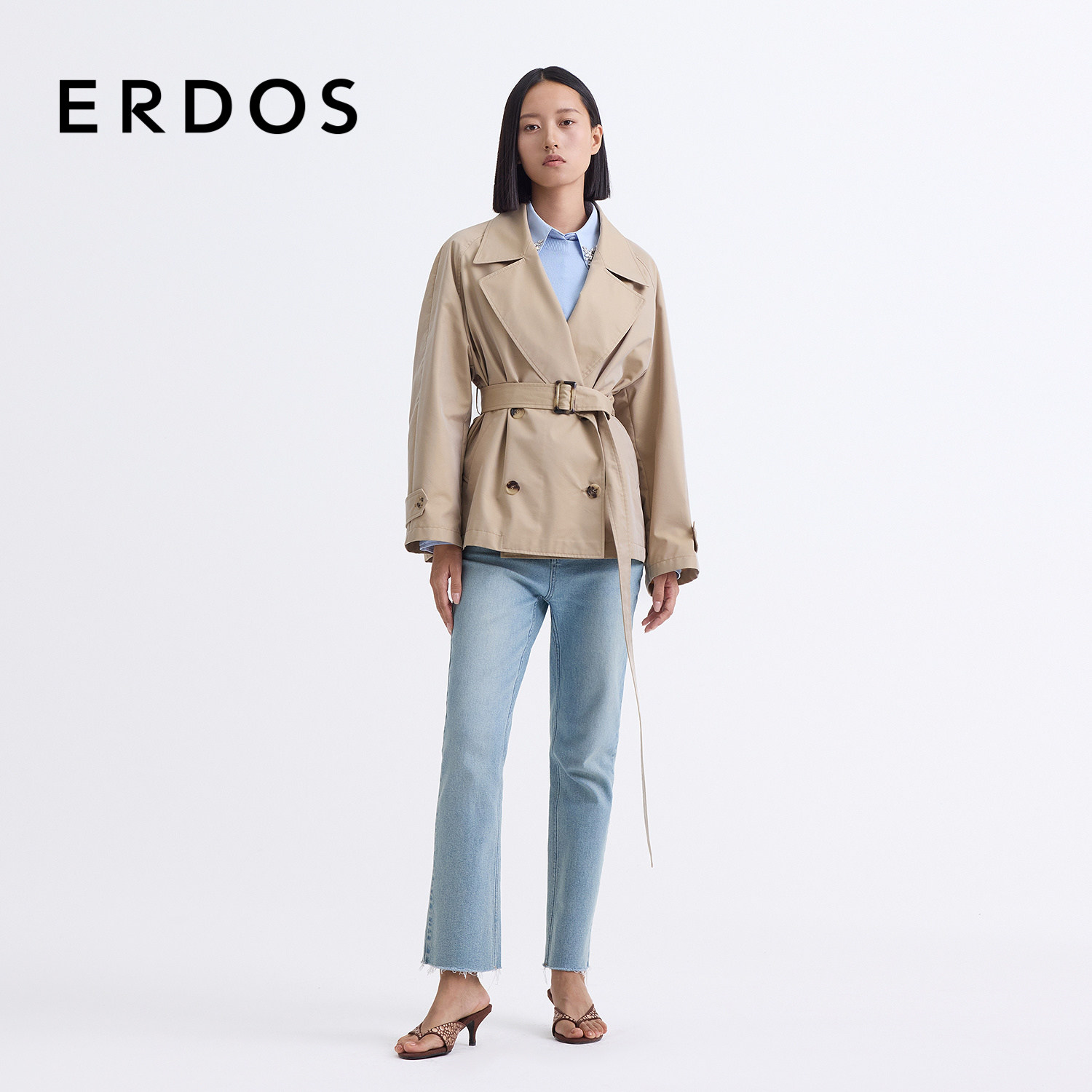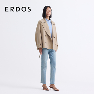 女棉质九分休闲百搭直筒裤 ERDOS 蓝色通勤水洗牛仔裤