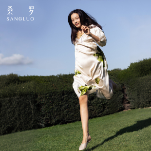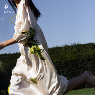明星同款 桑罗真丝睡裙100%桑蚕丝轻礼服长裙葡萄印花度假连衣裙