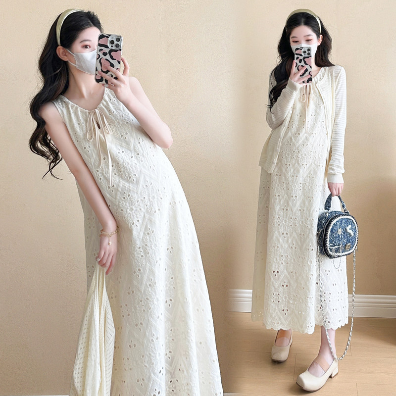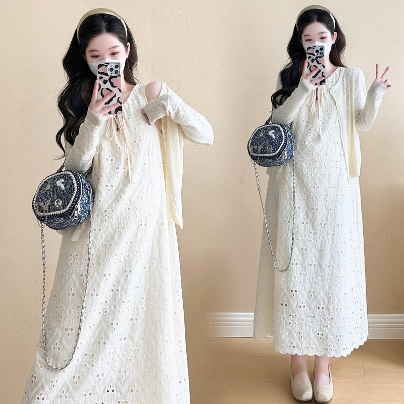 韩版 设计感长袖 外穿时尚 2025春秋款 背心裙套装 新款 百搭开衫 孕妇装