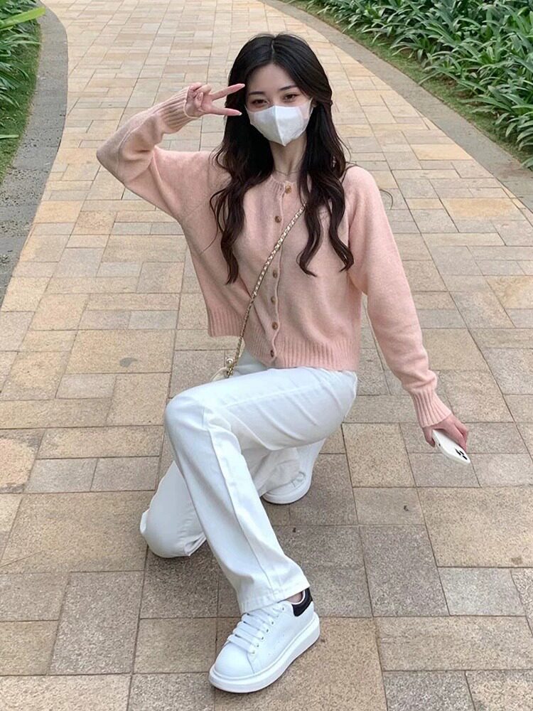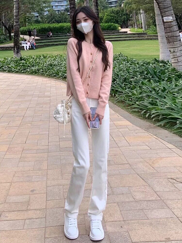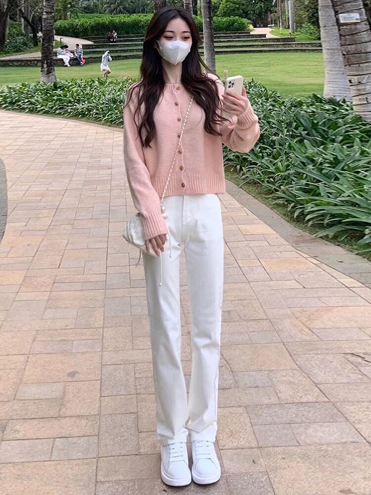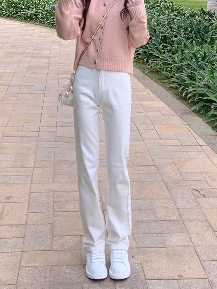 弹力烟管堆堆裤 2024夏季 女高腰显瘦宽松窄版 白色直筒牛仔裤 子 新款