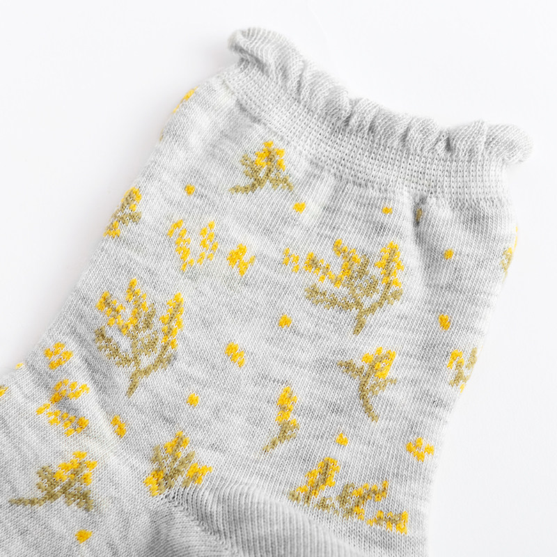 ATSUGI 植物花卉含羞草图案短袜日系甜美短筒袜 厚木春夏薄款