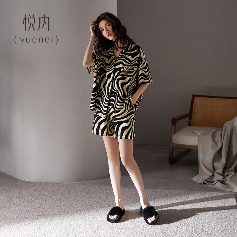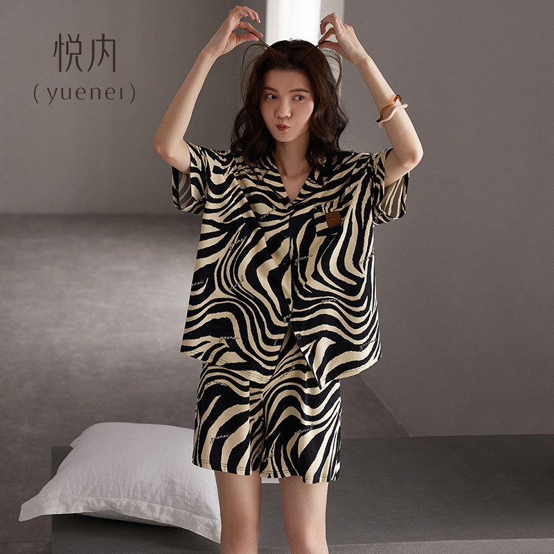莫代尔短袖 套装 短裤 斑马纹时尚 家居服冰丝夏天夏款 悦内睡衣女夏季