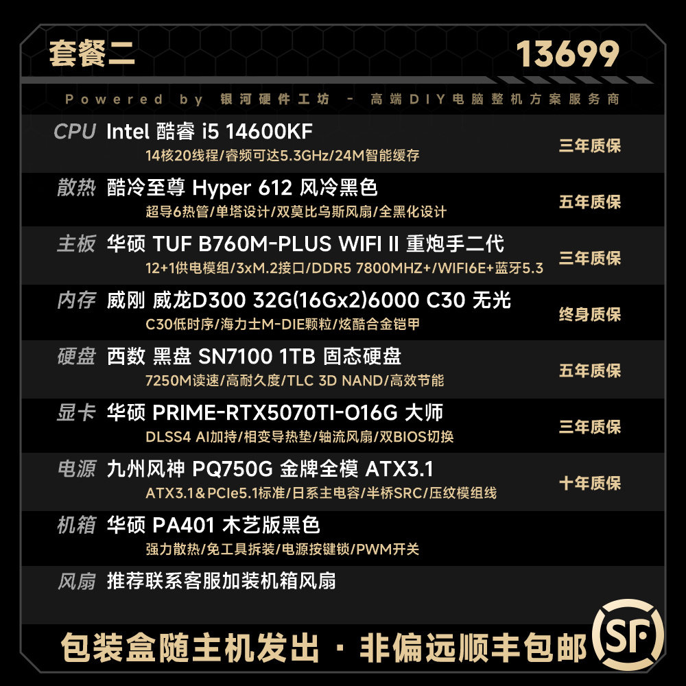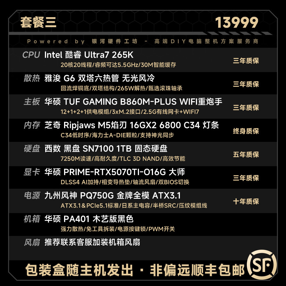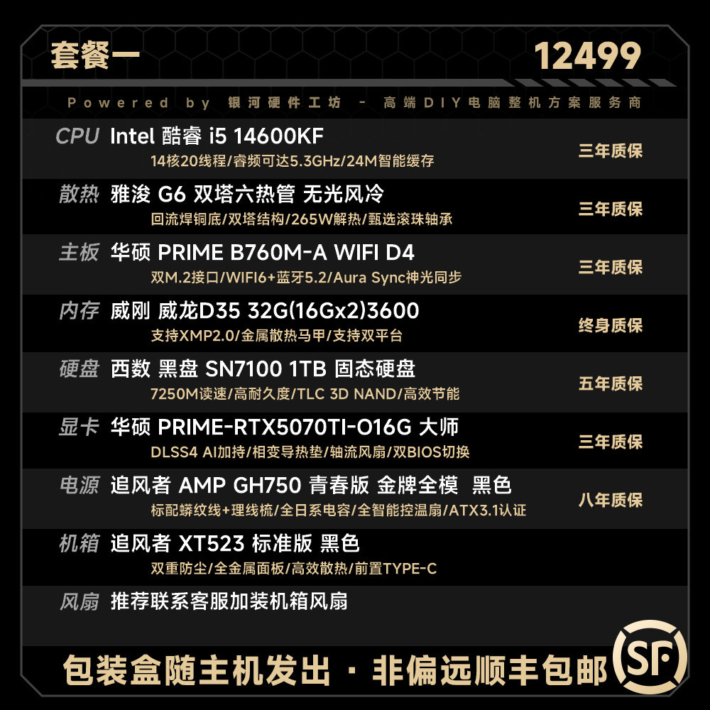 265KF吃鸡CS打瓦三角洲游戏DIY主机 14600KF 华硕 RTX5070TI