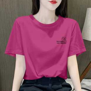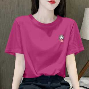半袖 玫红色t恤短袖 正肩纯棉宽松遮肚子中长款 新款 上衣女 2026夏季