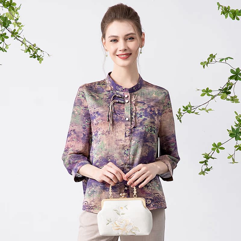上衣 气质妈妈装 赏心岁月中年妈妈国风印花衬衣夏季 新款