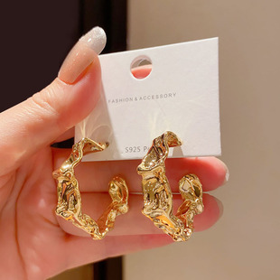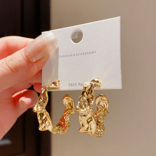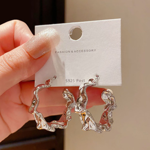 高级感圆圈耳圈耳环耳夹无耳洞小众独立设计师金属褶皱夸张耳钉