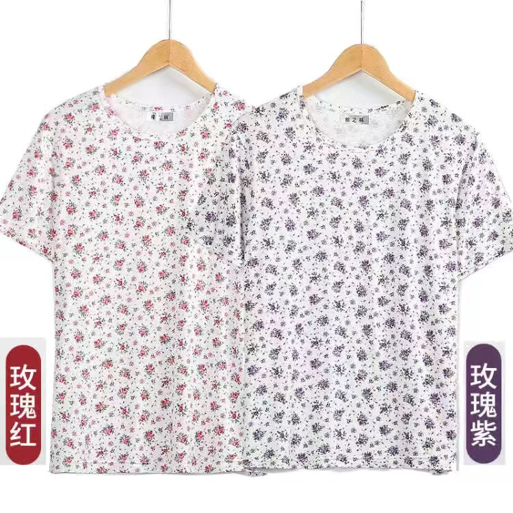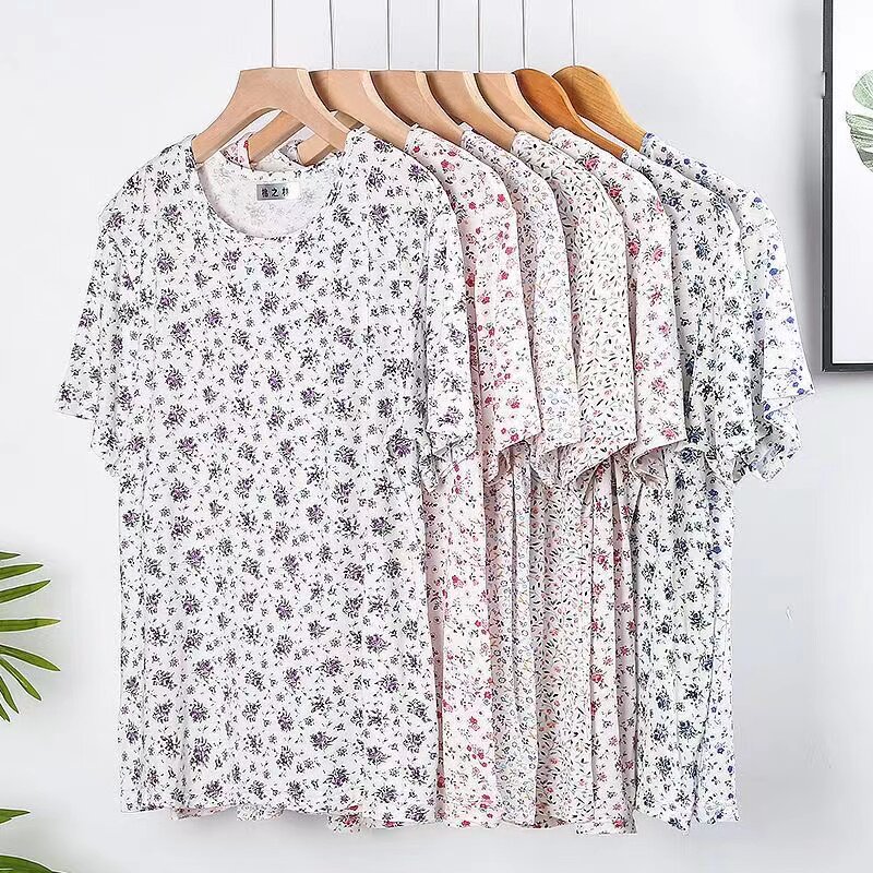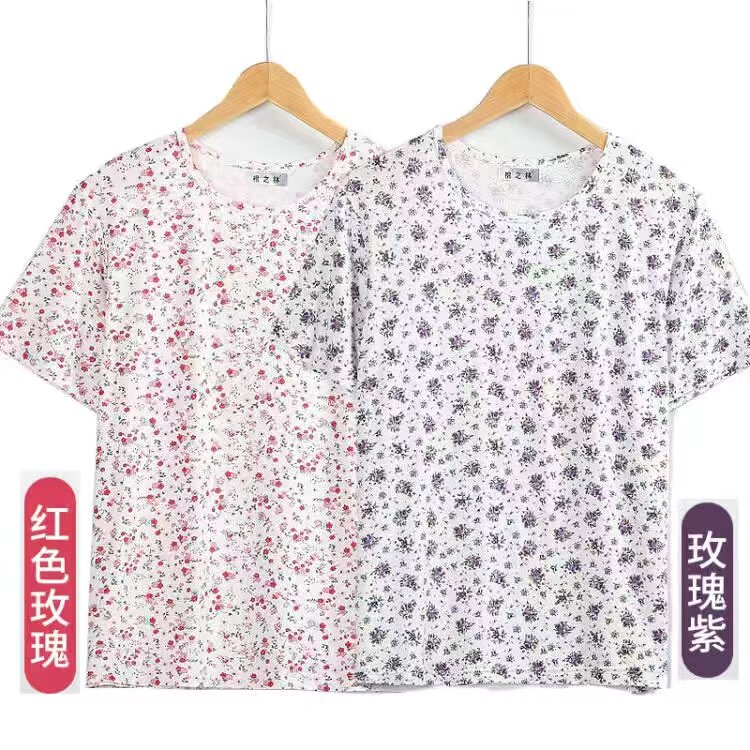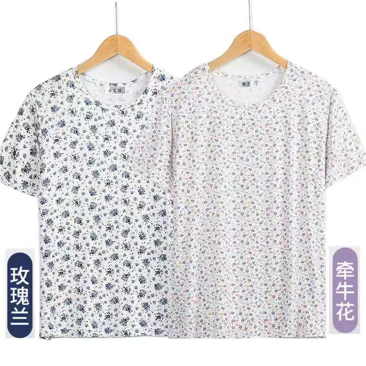 婆婆加肥加大码 妈妈夏天T恤短袖 汗衫 中老年薄款 上衣休闲外穿 女装