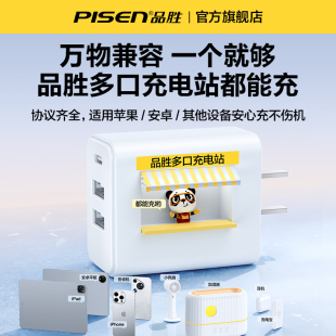 品胜多口充电器适用苹果安卓小米充电头typec三口pd快充usb插头四口三合一拖三通用手机数据线套装 平板3A冲电