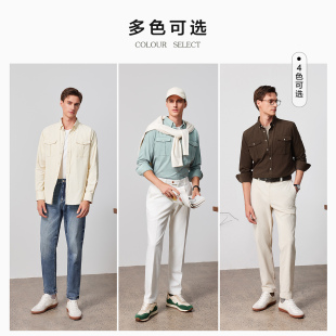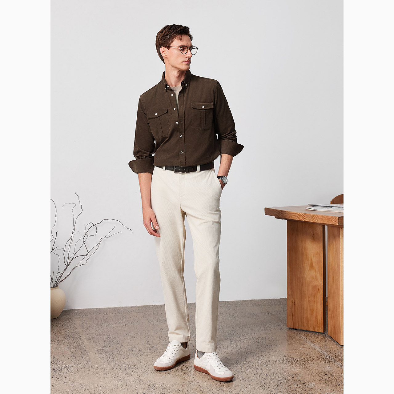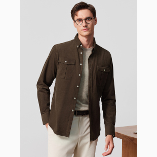 商务男士 衬衫 柏品纯棉长袖 纽扣领宽松休闲复古衬衣外套 灯芯绒