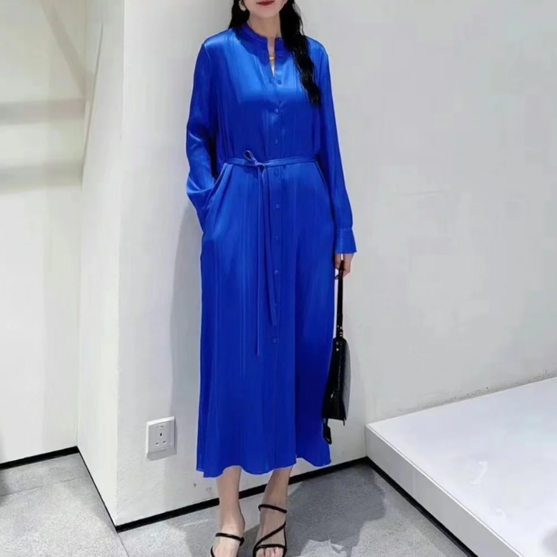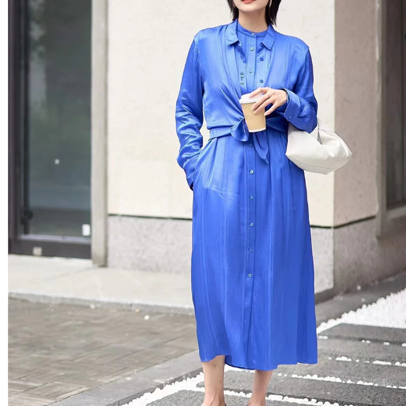 A1EG30026原4680 大牌2024秋 MF秋连衣裙 玛菲裙子桑蚕丝褶皱肌理