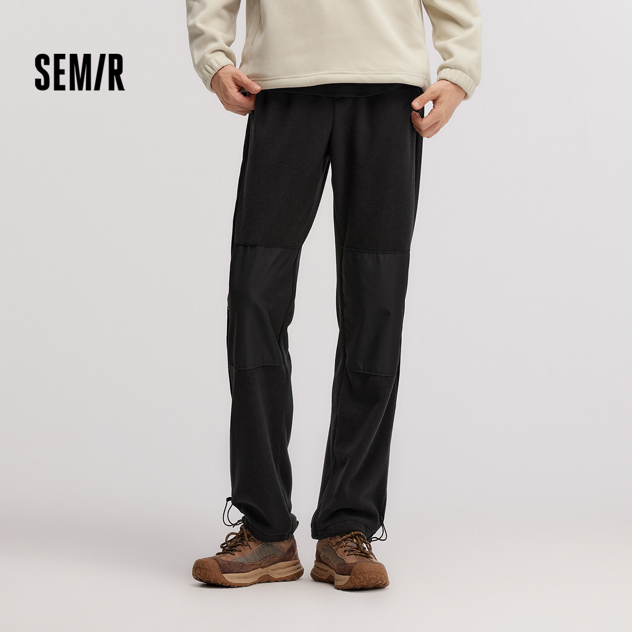 拼接户外风印花宽松直筒裤 新款 男抗静电摇粒绒2024冬季 森马休闲裤