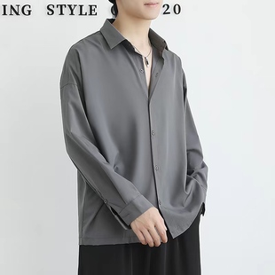 潮流春秋季 男韩版 设计感休闲宽松白色上衣 高级禁欲系长袖 黑色衬衫