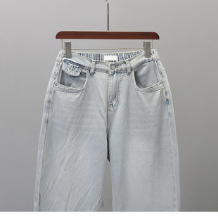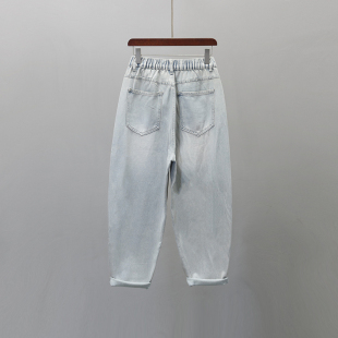 宽松显瘦休闲胖MM哈伦裤 新款 女2025春季 浅蓝色后松紧腰老爹牛仔裤