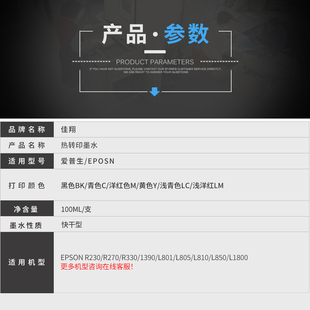 R350T照片恤瓷杯印花热升华墨水 L850烫画墨水R320 佳翔热转印墨水适用爱普生R330打印机专用墨水R230 L805