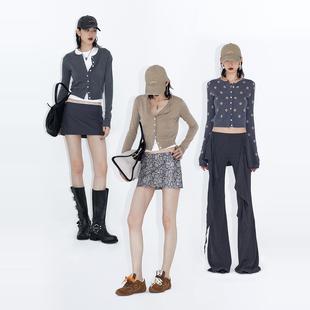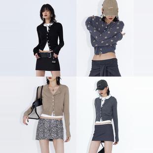 女秋设计感打底衫 ourhour 针织开衫 深灰驼色小圆领短款 软糯简约