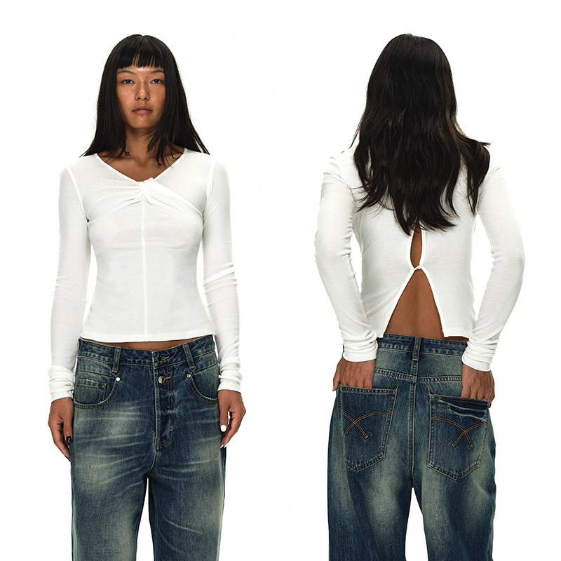 弹力修身 白色天丝羊毛针织打底衫 T恤 PAGE黑 EMPTY