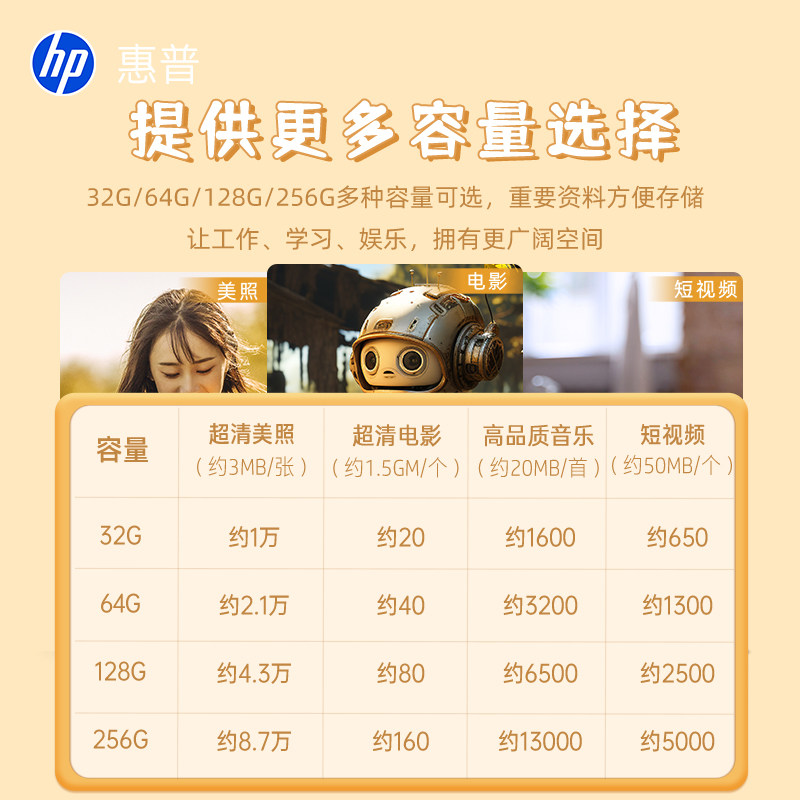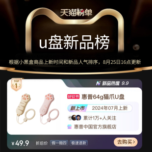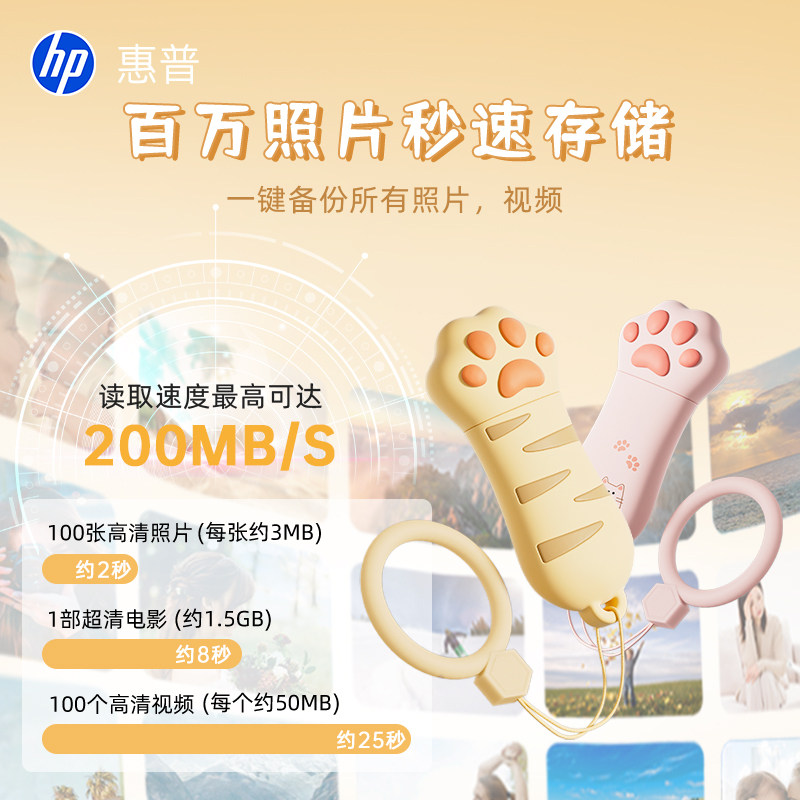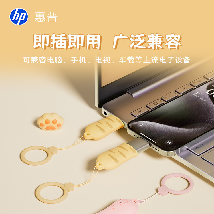 惠普正品 可爱创意猫爪U盘128g大容量办公女学生手机电脑两用优盘