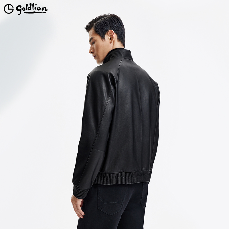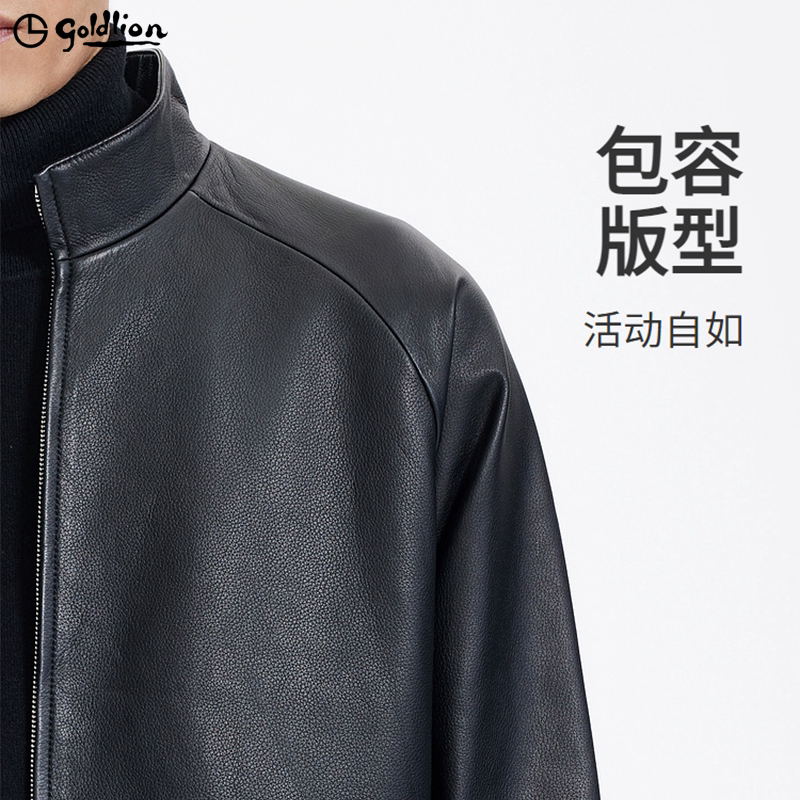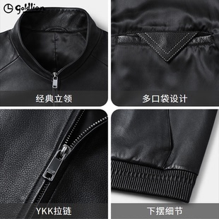 皮衣羊皮仿鹿纹时尚 男士 立领拉链夹克外套男 新款 金利来2026春季