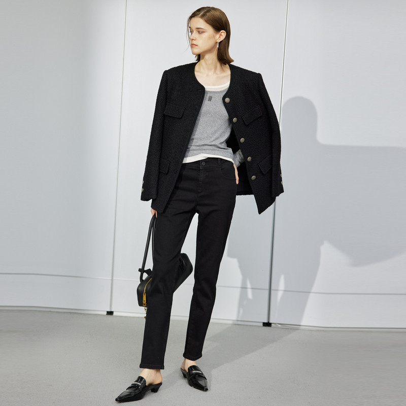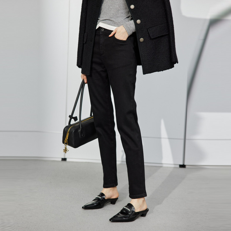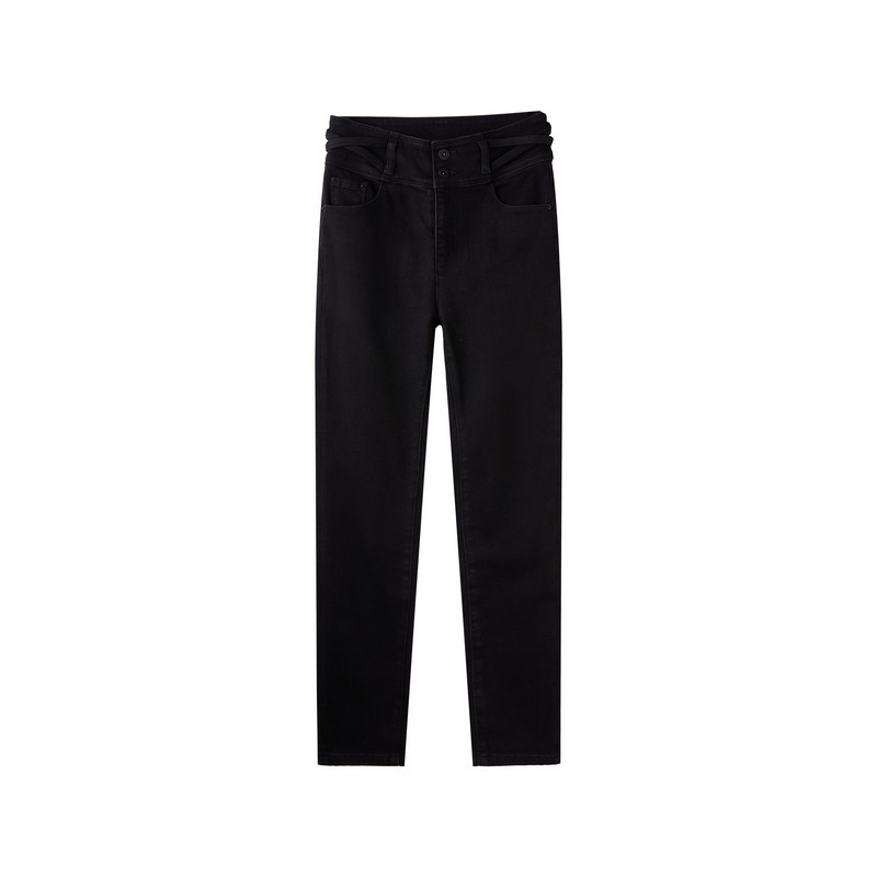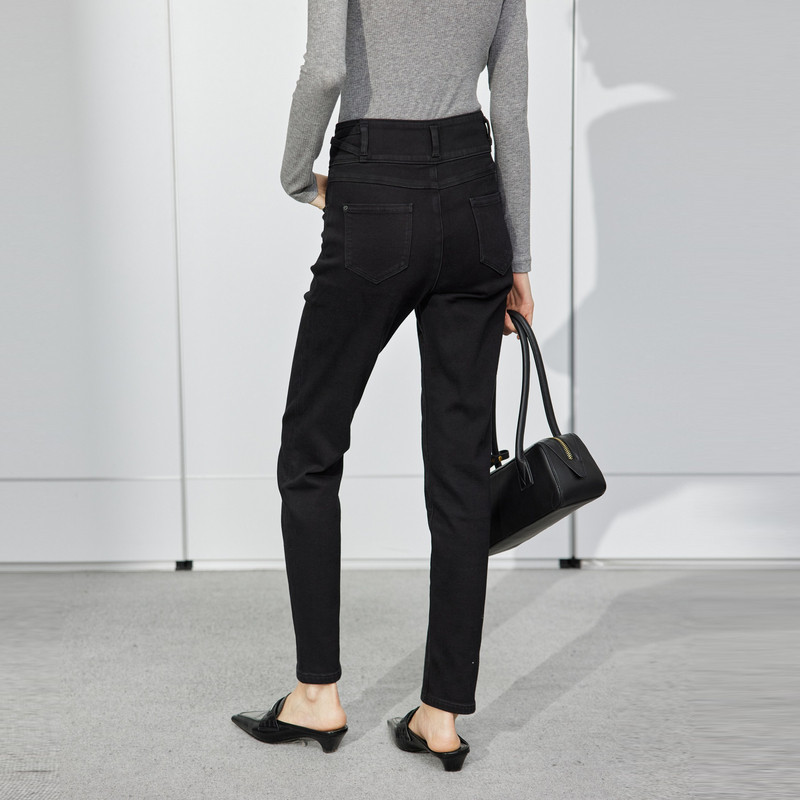 弹性休闲裤 女百搭修身 尤缇时尚 冬季 新款 TI黑色设计感牛仔小脚裤