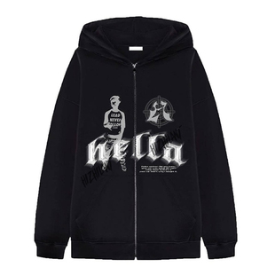 series jacket美式 sweatshirts zipper 复古连帽卫衣 Loose Dark