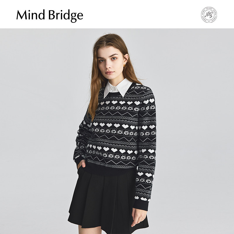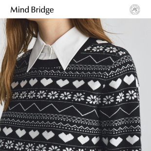 宽松针织衫 圆领复古毛衣女士撞色毛线衣2026新款 Bridge春季 Mind