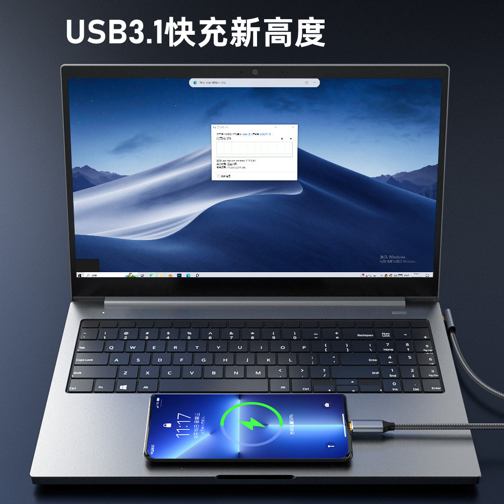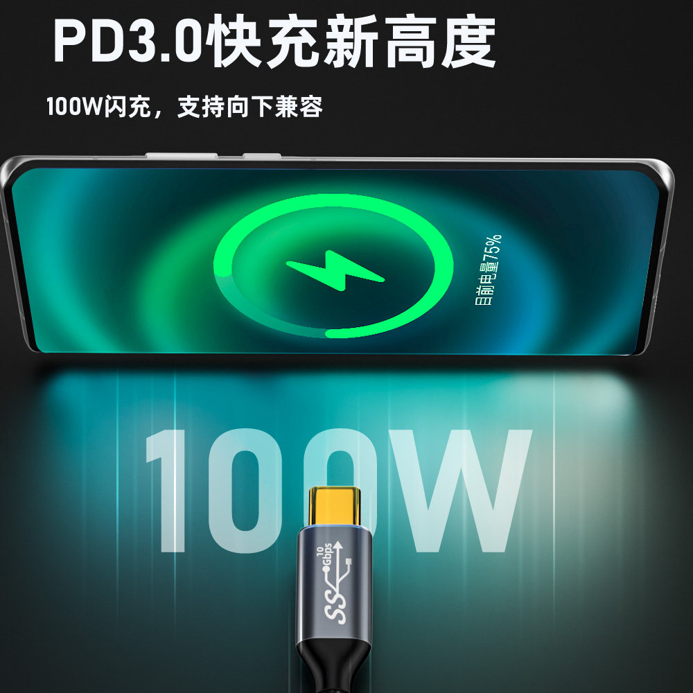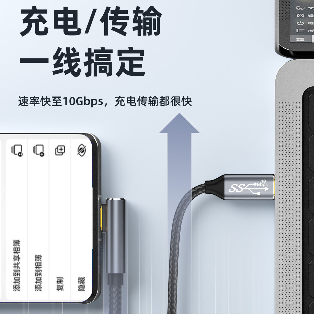 TYPE C数据线弯头PD100W快充线USB3.1Gen2全功能VR串流相机联机拍摄10Gbps笔记本电脑4K高清投屏一线通便携屏