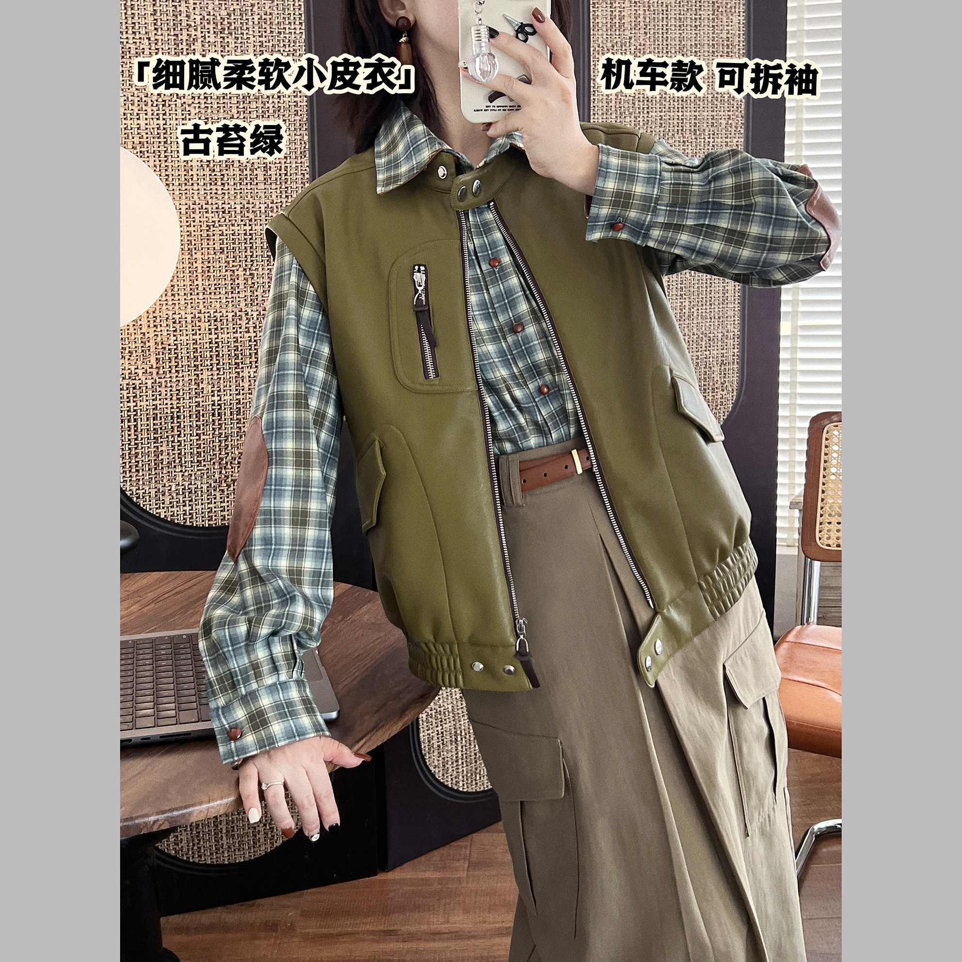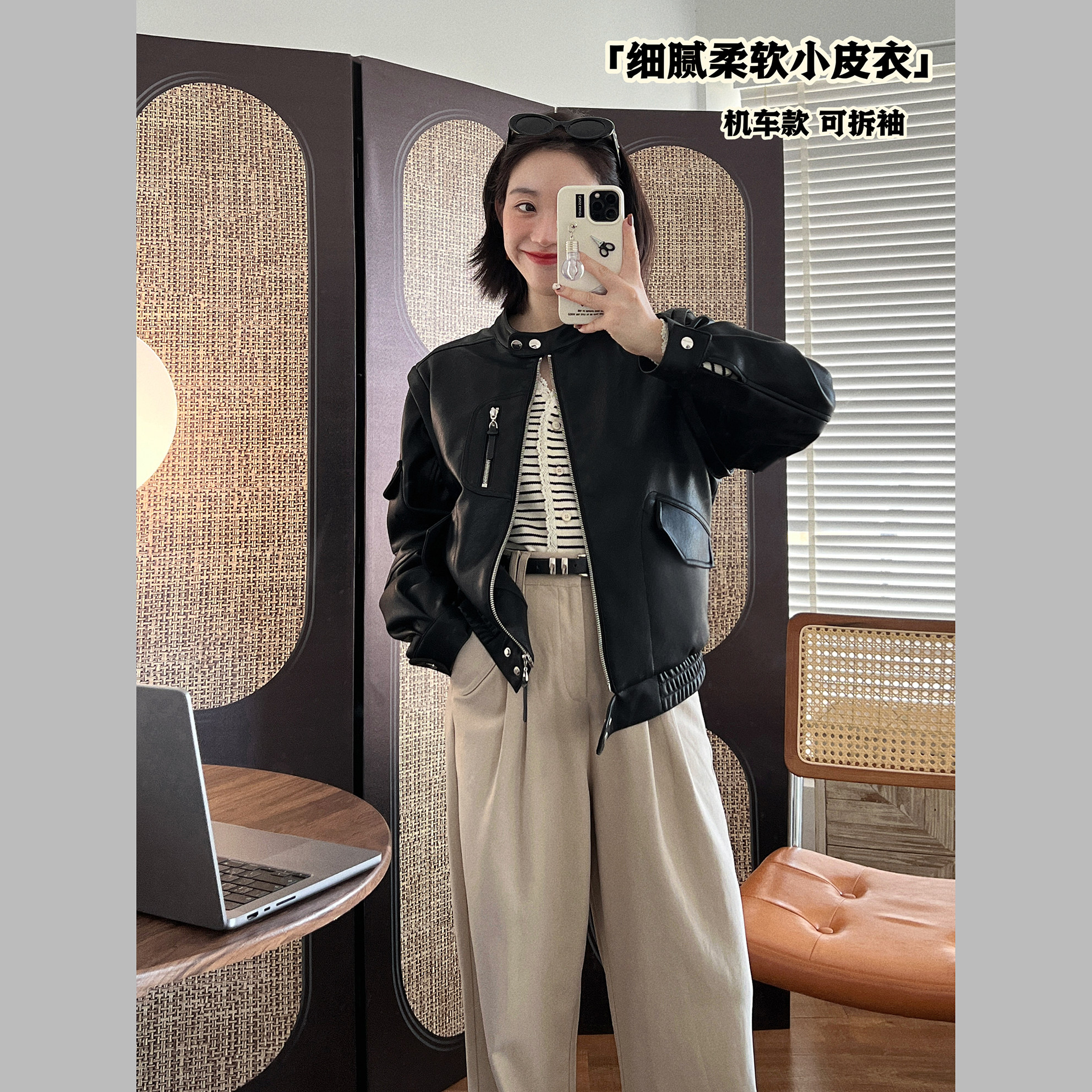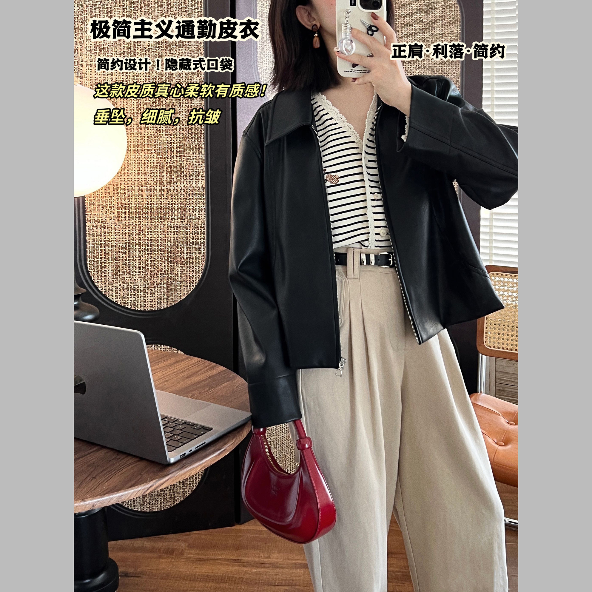 极简通勤正肩皮衣 垂坠细腻抗皱 袖 子可拆袖 皮衣 机车版 少年侠