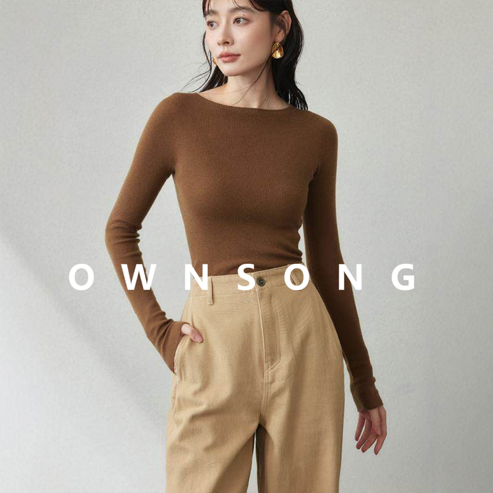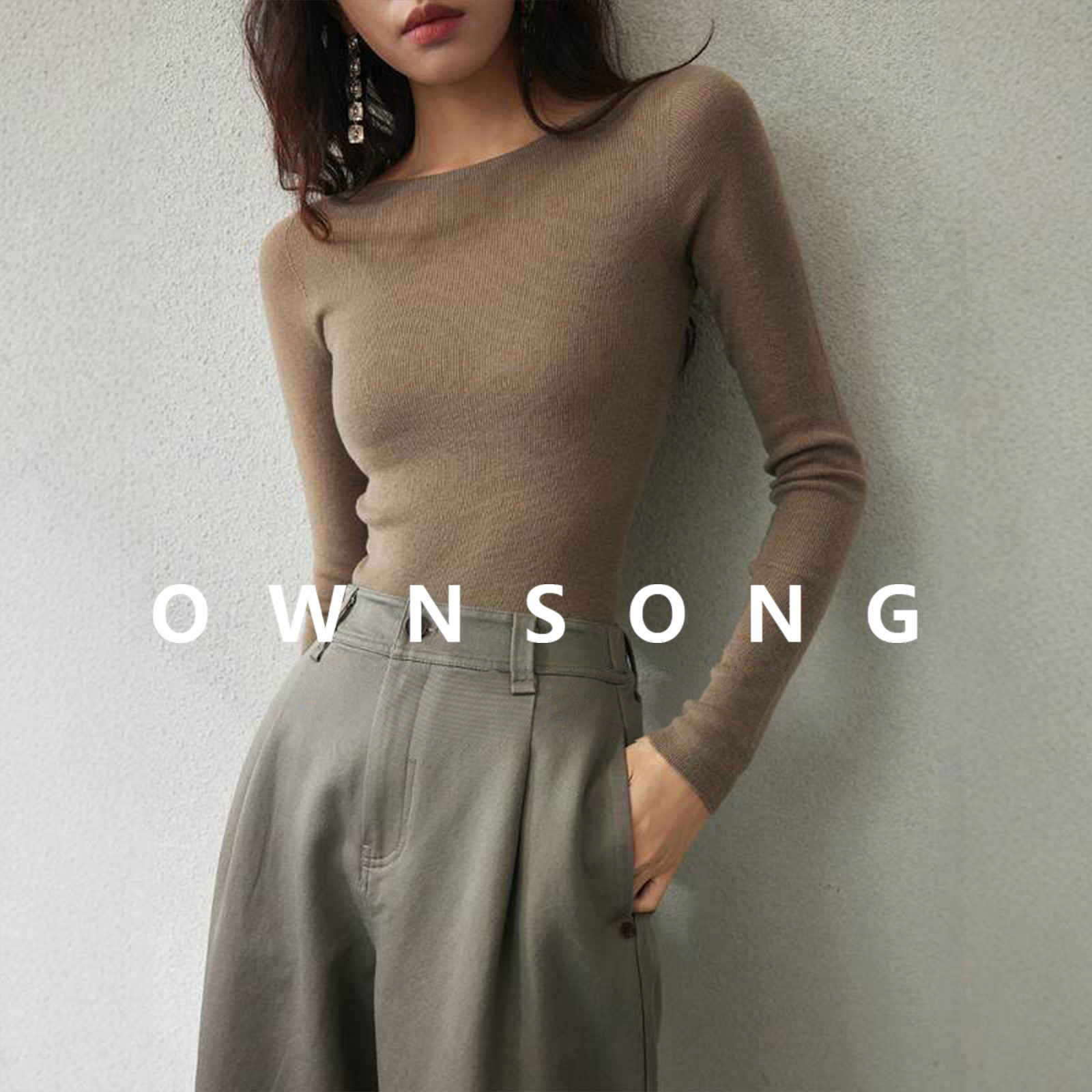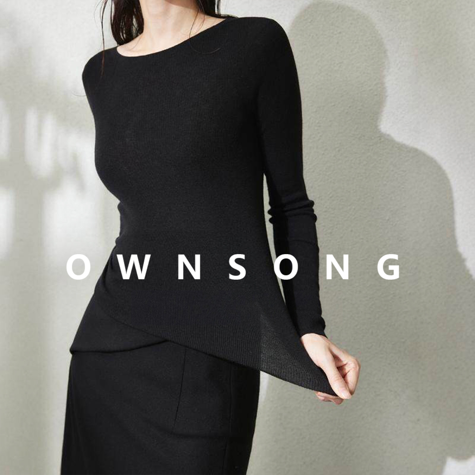 毛衣女 长袖 OWNSONG无缝一体圆领羊绒真丝针织打底衫 女秋圆领修身