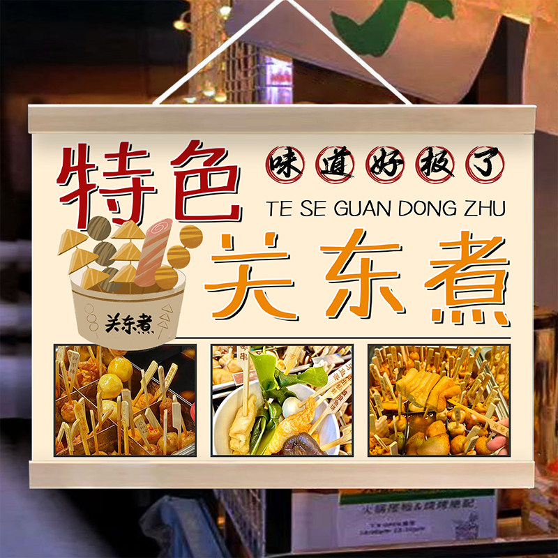 美味关东煮挂画串串香摆摊广告布防水夜市后备箱挂布移动摊位海报