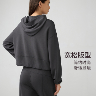 双侧口袋瑜伽运动卫衣女士 宽松连帽开衫 lu同款 秋冬休闲简约时尚