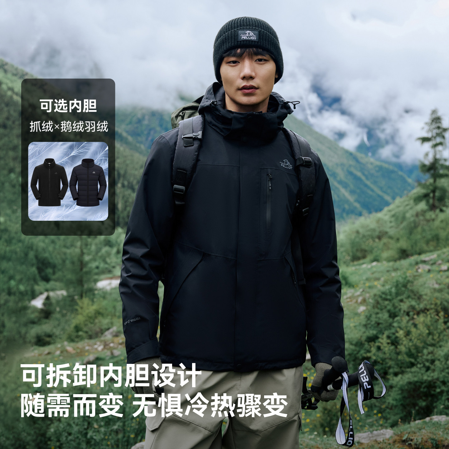 三合一防风防水外套女 伯希和山野2.0户外冲锋衣男款 成毅同款