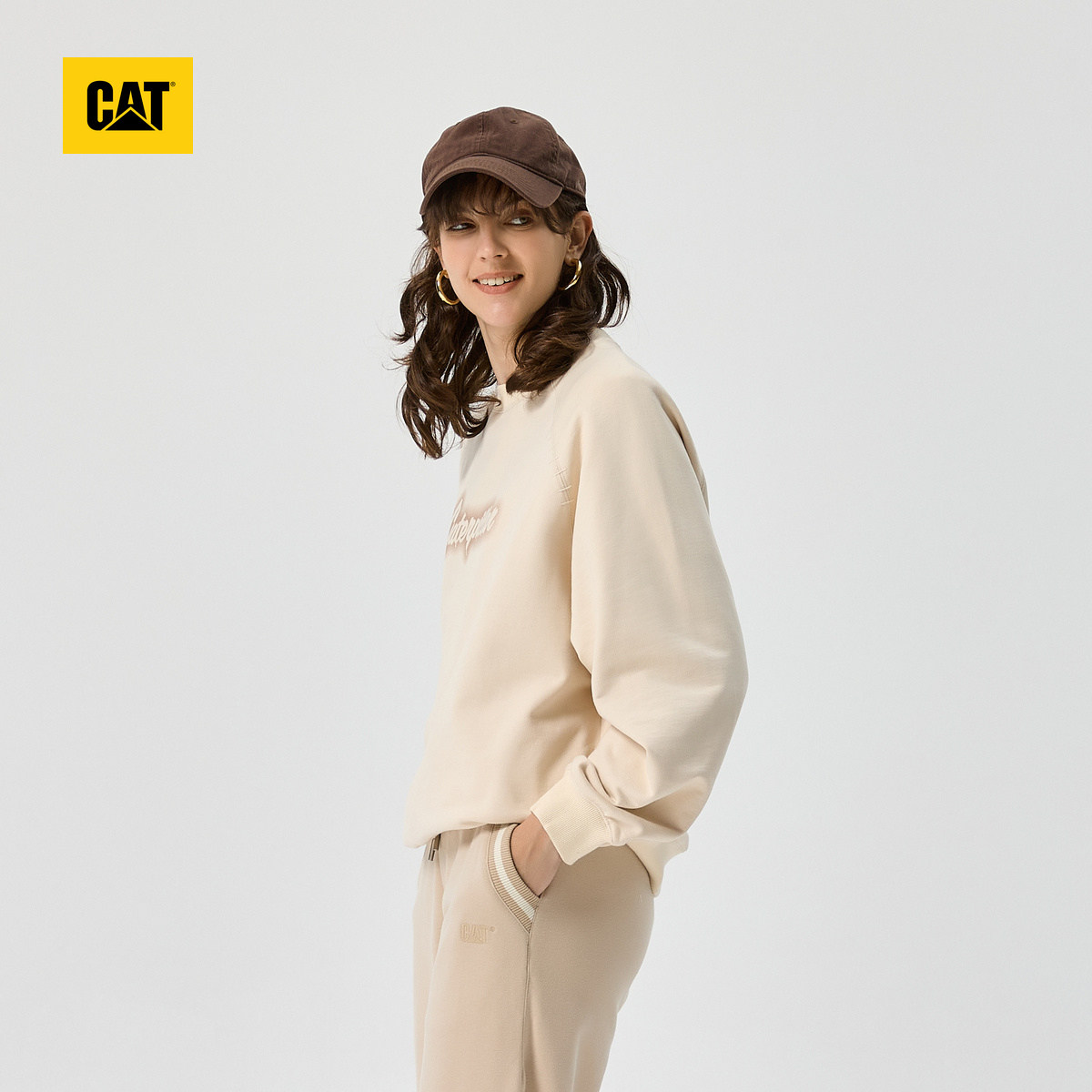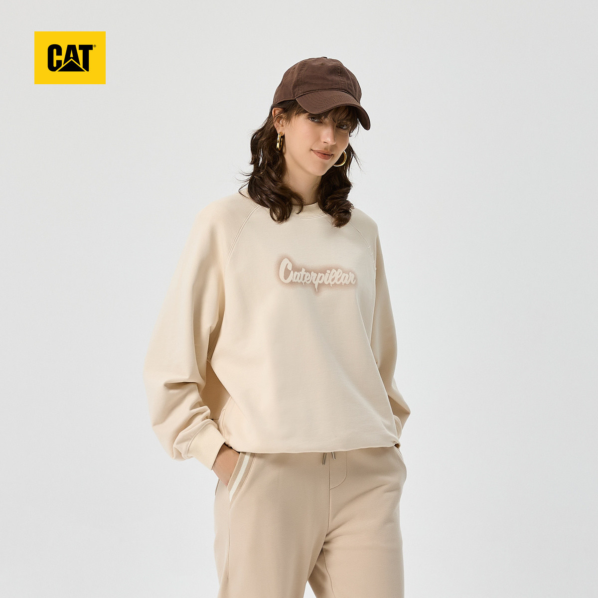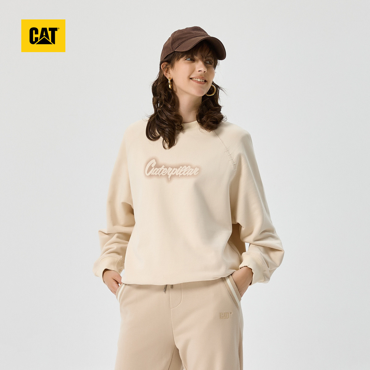 圆领卫衣商场同款 CAT卡特春季 女士户外休闲宽松百搭套头美式