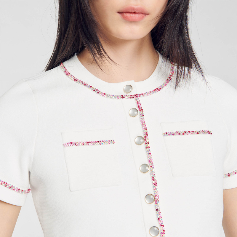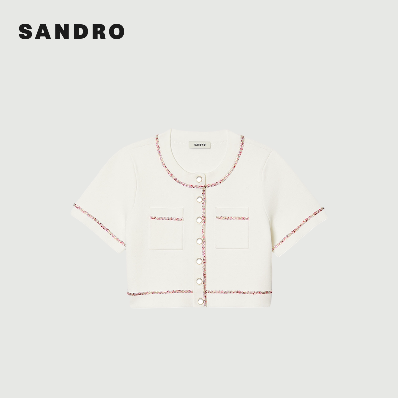 Outlets秋冬女装 饰按扣仿钻针织开衫 法式 白色装 气质时尚 SANDRO