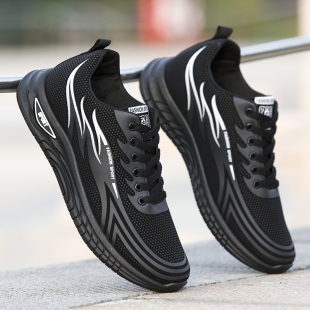 休闲鞋 春秋季 软底跑步鞋 黑色皮面百搭运动鞋 男 防水防滑鞋 潮鞋 男鞋