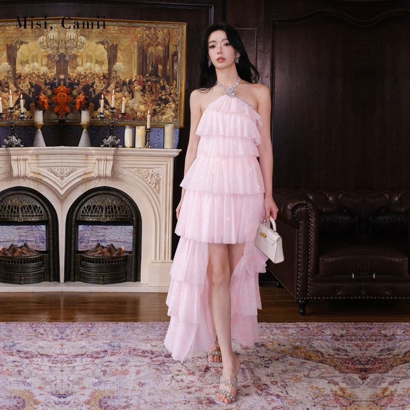 连衣裙 感轻奢女装 Misi.Camii2024新款 玫瑰挂脖蛋糕裙长礼服裙时尚