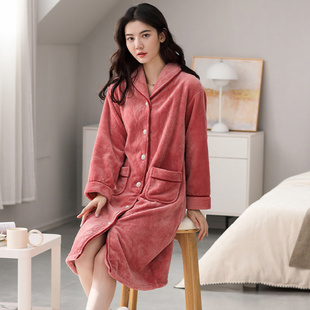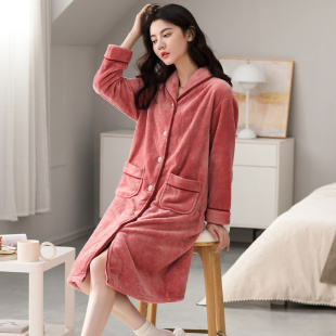 中长款 2024年新款 睡裙冬天浴袍 加绒加厚发热法兰绒大码 睡袍女冬季