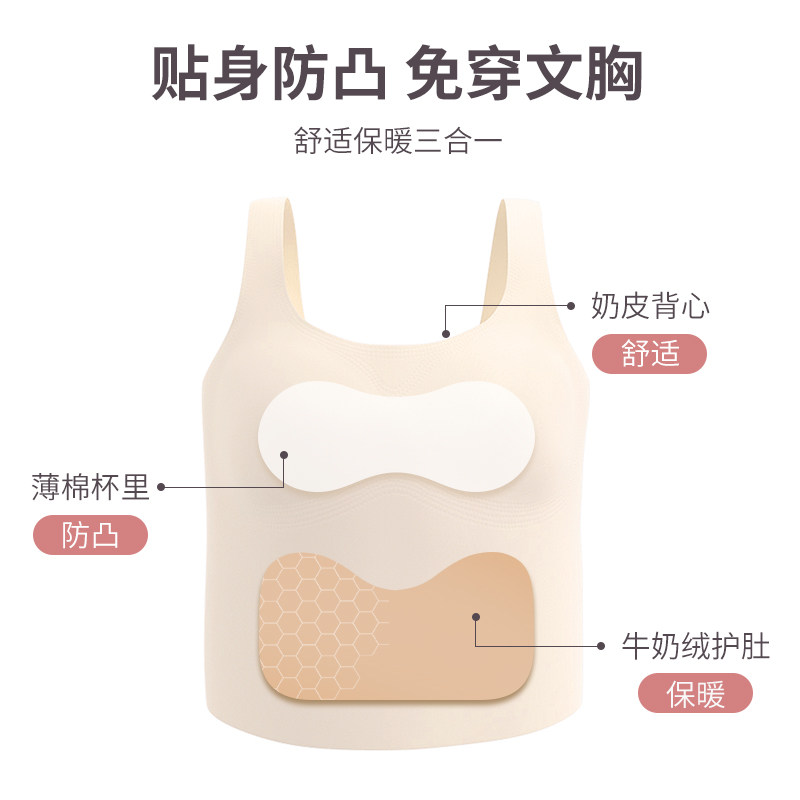 初遇少女保暖背心女带胸垫打底文胸一体加绒学生初中无痕内衣秋冬