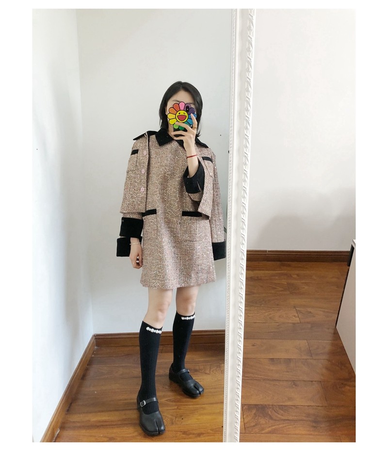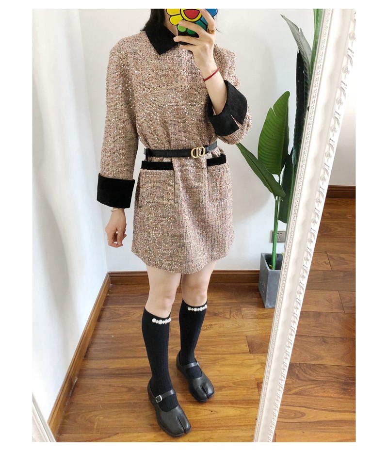 断码 买手ICE真丝内衬小香风丝绒拼接亮片粗花呢气质连衣裙 折扣