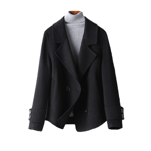 春秋新款 领黑色韩版 高端羊毛呢外套小个子 西装 双面绒大衣女短款