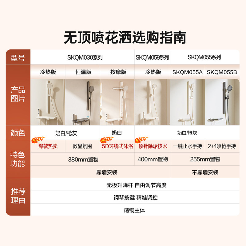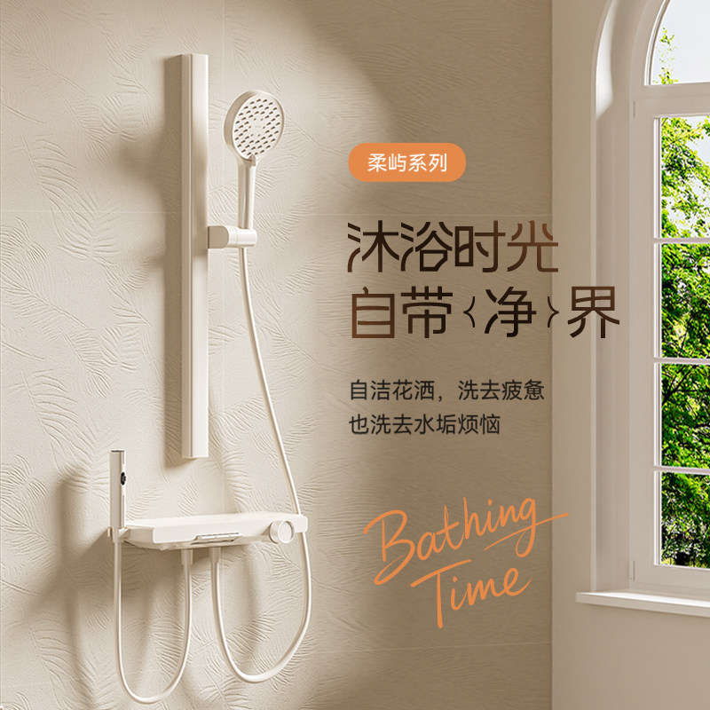 奶白花洒分体无顶喷花洒59 浪鲸简易淋浴花洒套装 国补15%