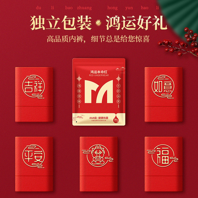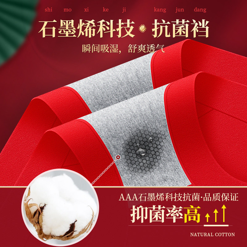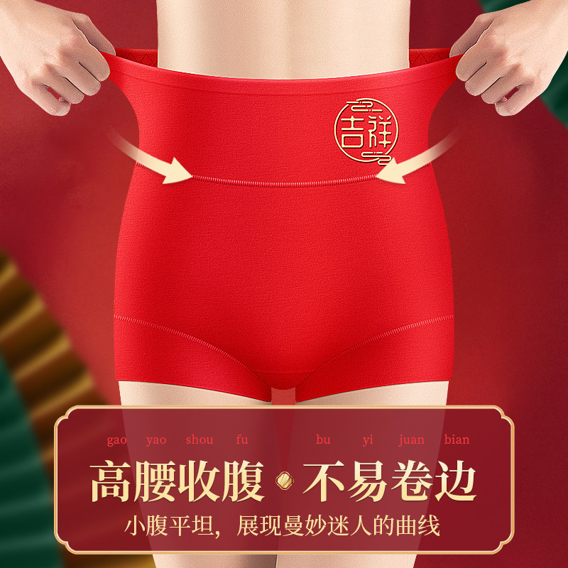 本命年红收腹全棉女士抗菌少女三角短裤 夏季 头 女中腰大码 纯棉内裤