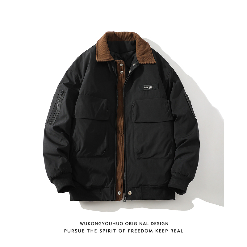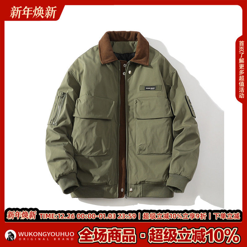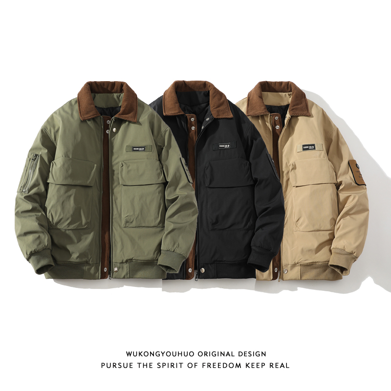 悟空有货复古潮牌日系工装 街头宽松保暖休闲棉服 翻领棉衣男女冬季