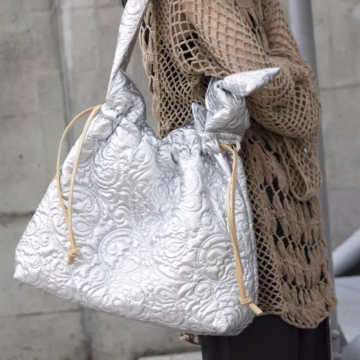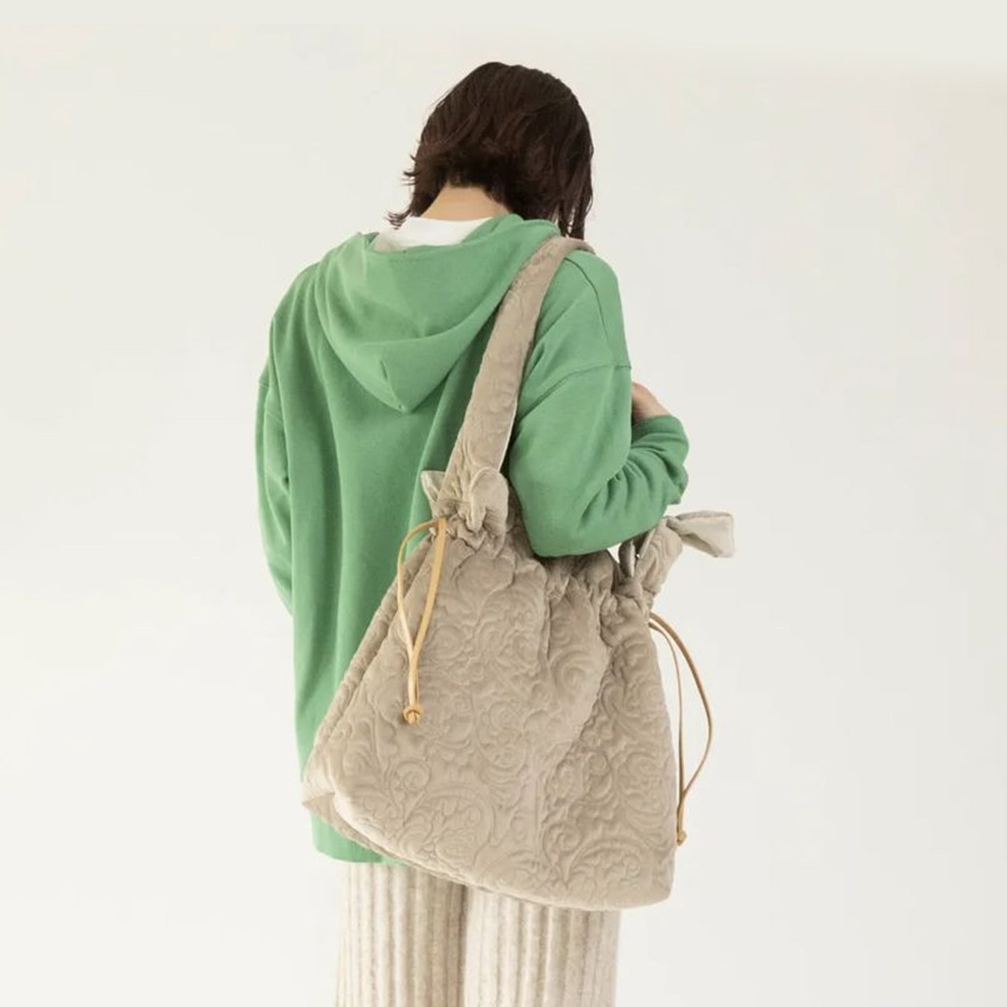 casselini浮雕云朵包大容量单肩斜挎包帆布抽绳女包 4折福利