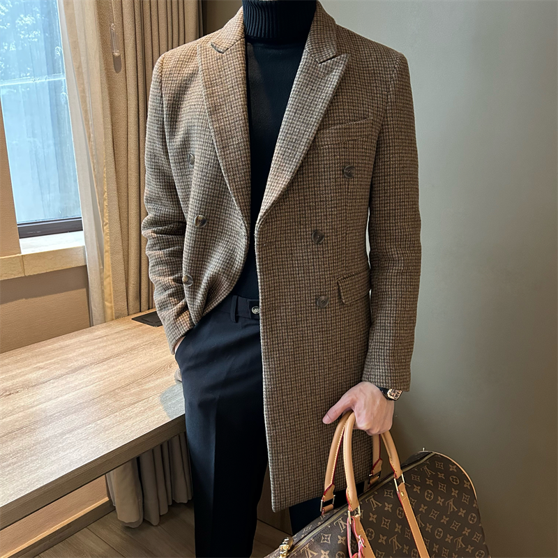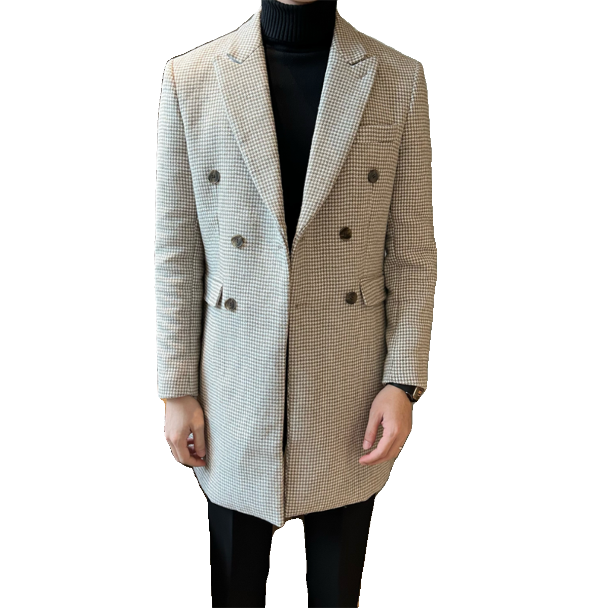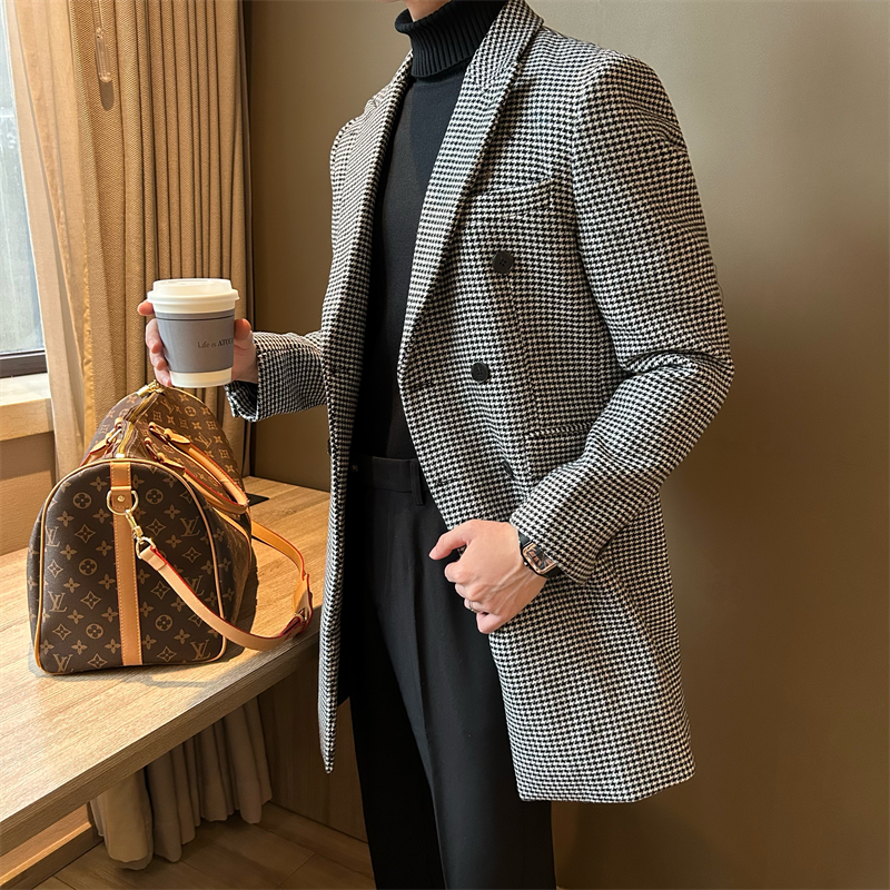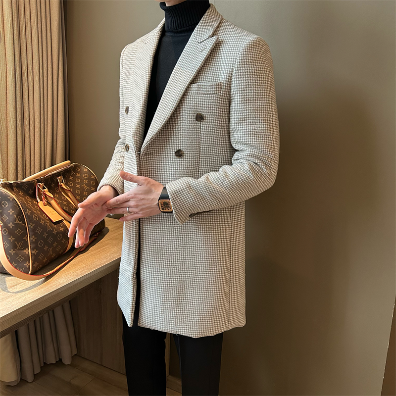领双排扣呢子风衣外套加厚ins潮流 过膝西装 冬季 毛呢大衣男中长款