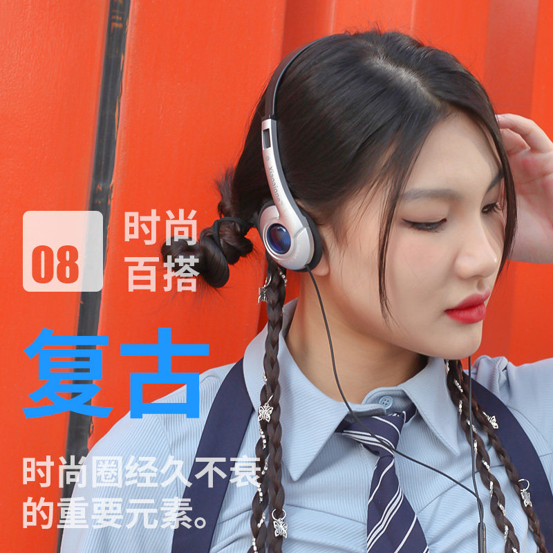 网红复古头戴式 c游戏适用苹果华为oppo小米电脑 有线耳机圆孔type