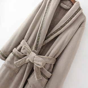 睡衣家居服 珊瑚绒浴袍男士 芬腾秋冬季 加厚法兰绒情侣睡袍女冬长款