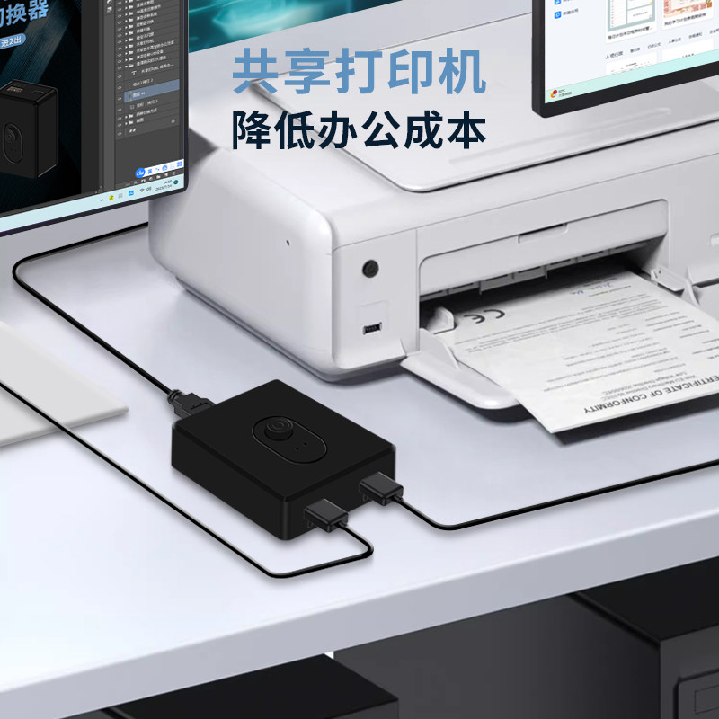 USB切换器打印机共享器2进1出台式 机笔记本电脑高速共用一台多台打印机扫描仪免插拔即插即用一拖二U盘二切一